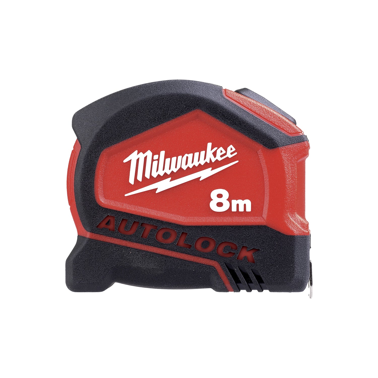 Der Autolock-Maßband Milwaukee 8 Min. verfügt über das Autolock-Bremssystem, das für eine automatische Blockierung des Bandes sorgt, sobald es herausgezogen wird.