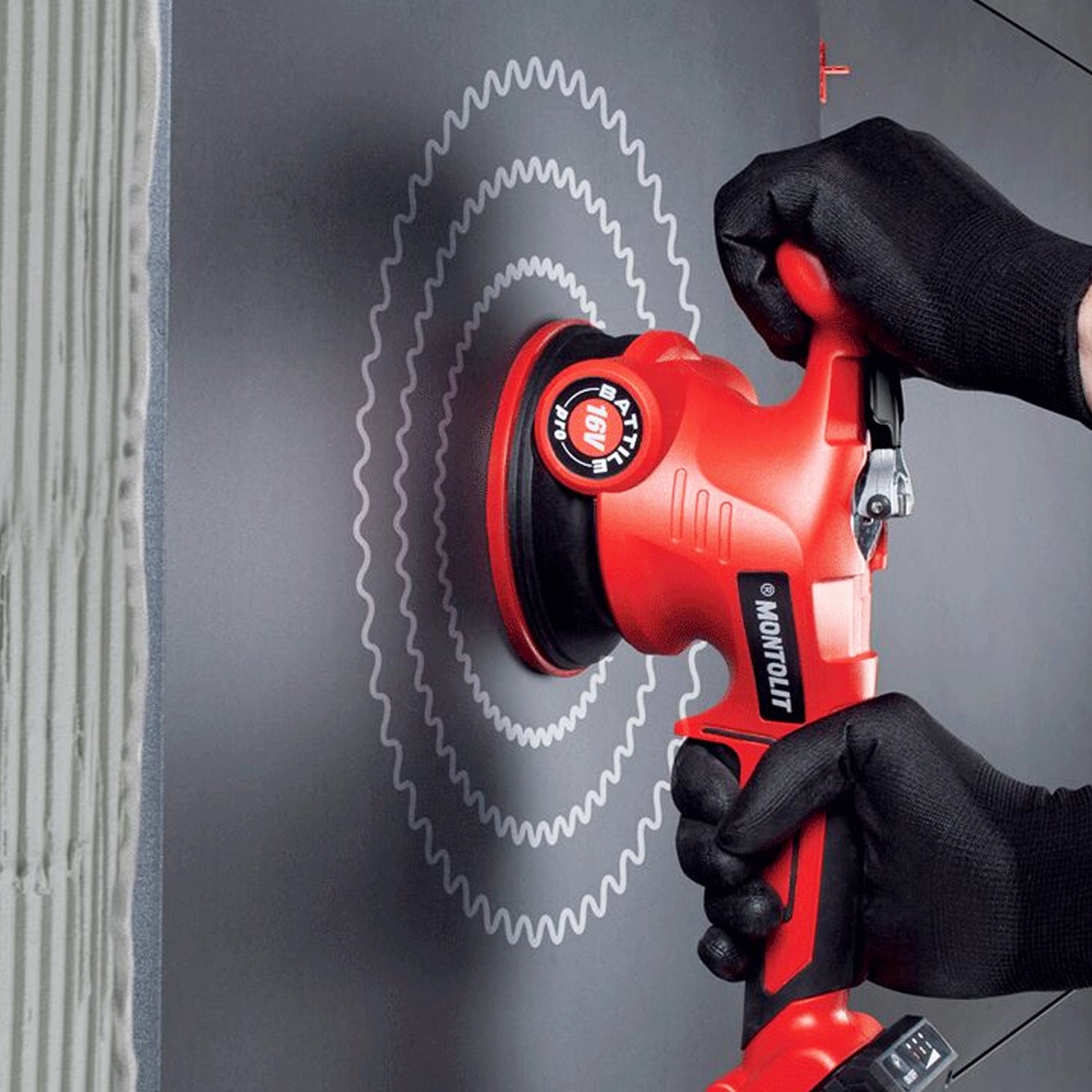 Der Fliesen-Saugnapf Montolit Battile-Pro 16 V 1 Ah Es ist ideal für Keramikfliesen und -platten, Feinsteinzeug, Granit, Marmor und Glas.