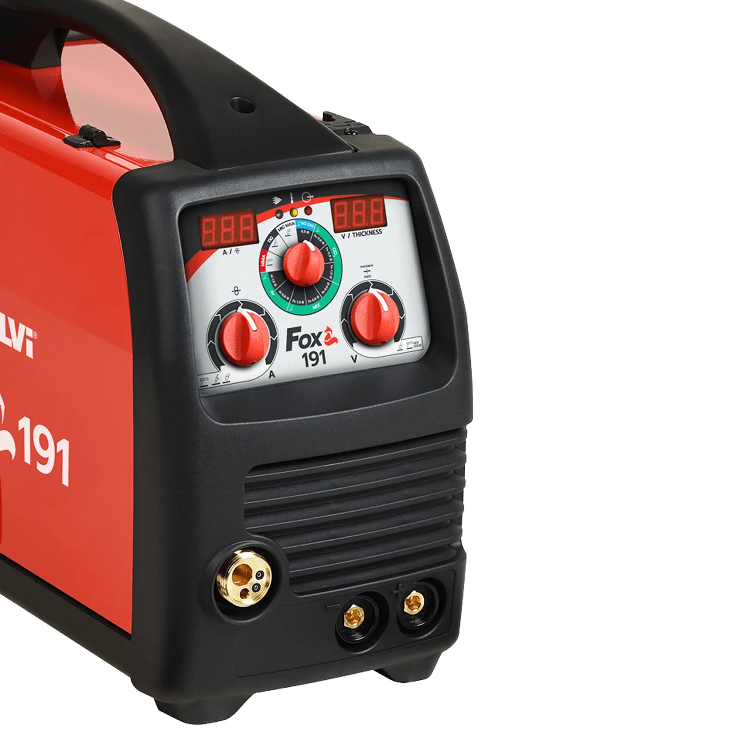 • Synergische Wechselrichtertechnologie: Erleichtert die automatische Einstellung der Schweißparameter und macht den FOX 191 auch für weniger erfahrene Benutzer ideal.