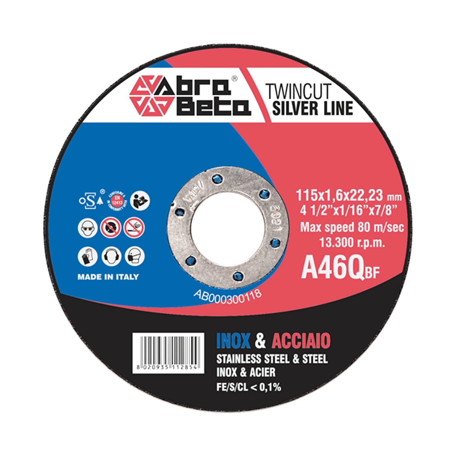 Trennscheibe Beta A36Q, von geringer Dicke. Universell einsetzbar zum Schneiden von rostfreien Stählen, legierten Stählen sowie behandelten und unbehandelten Stählen.