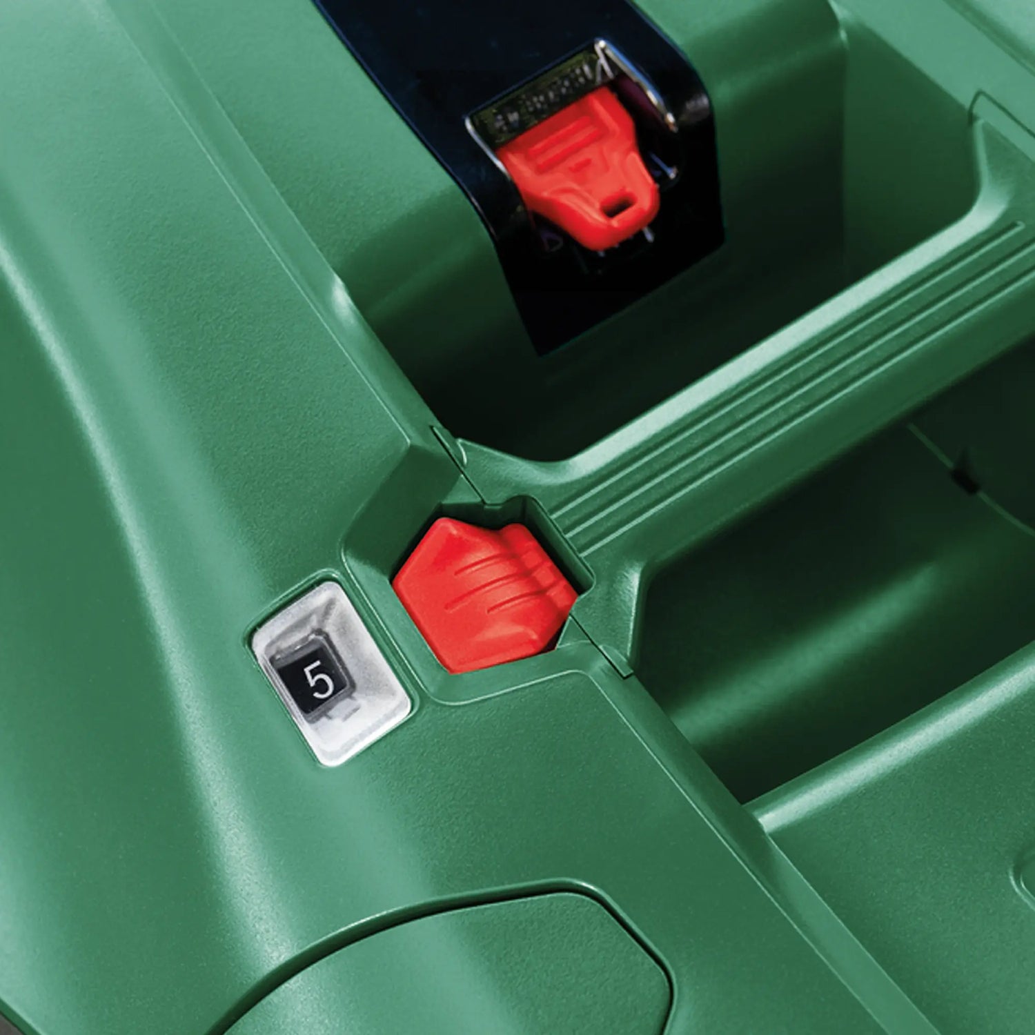 ✔ Zentrale Höhenverstellung: 7 Stufen von 25 bis 80 mm für jeden Schnittbedarf