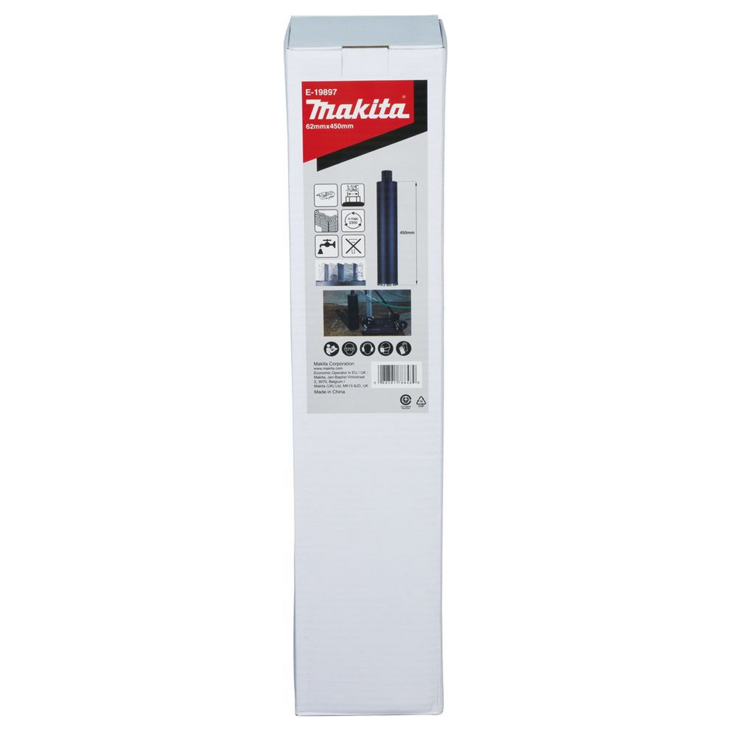 - 1 Makita E-19897: Diamantkernbohrer 62x450mm Nass 1-1/4"UNC.
