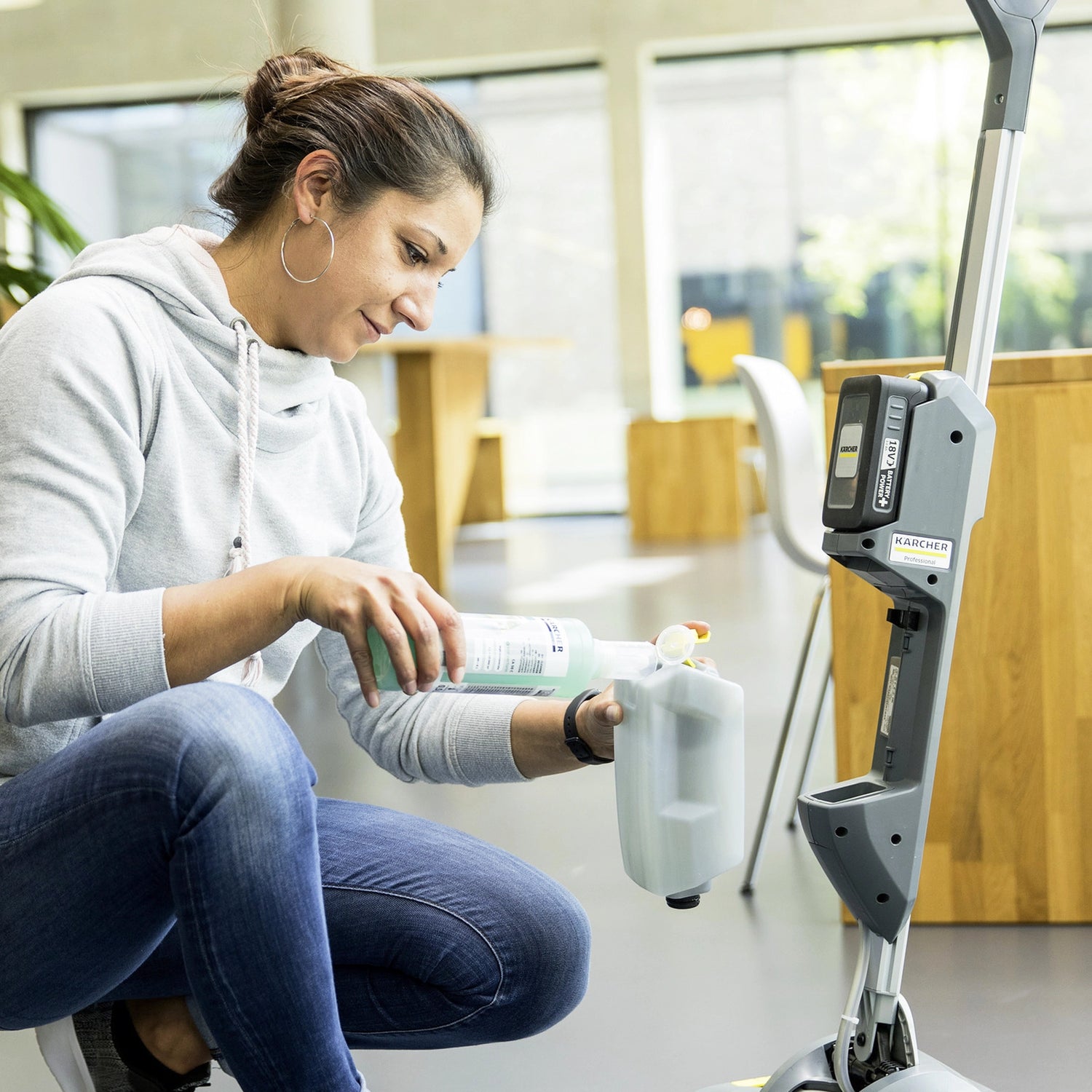 Bodenwaschtrockner Karcher BR 30/1 C Bp Pack 18 V 3 Ah ist ideal für die hygienische Unterhaltsreinigung und Desinfektion von Böden in Restaurants, Bars, Geschäften, Büros und Hotels.