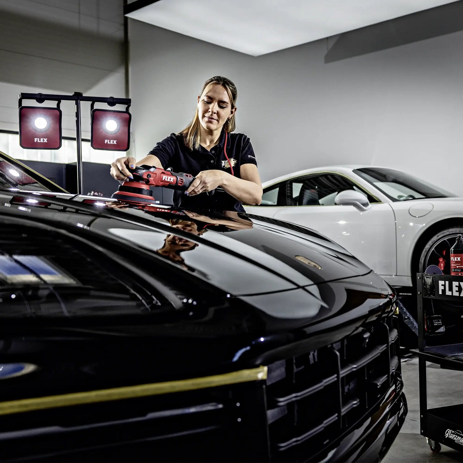 Bei EmmetiStore finden Sie professionelle Lösungen für Polier- und Detailarbeiten. Flex PE 2 14-EC C Es handelt sich um eine Hochleistungs-Rotationspoliermaschine, ausgestattet mit einem bürstenlosen Motor der neuen Generation, variabler Drehzahl, progressivem Anlauf und einem extrem flachen Getriebekopf für perfekte Kontrolle in jeder Arbeitsposition.
