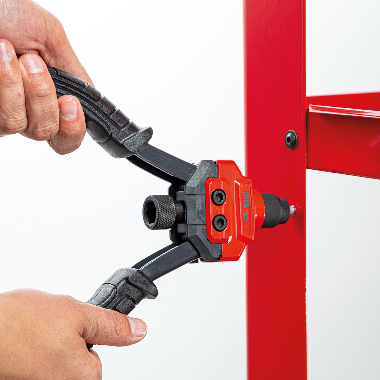• Internes Hebelsystem: Reduziert den für die Bedienung erforderlichen Kraftaufwand und macht den Nietvorgang schneller und weniger ermüdend.
