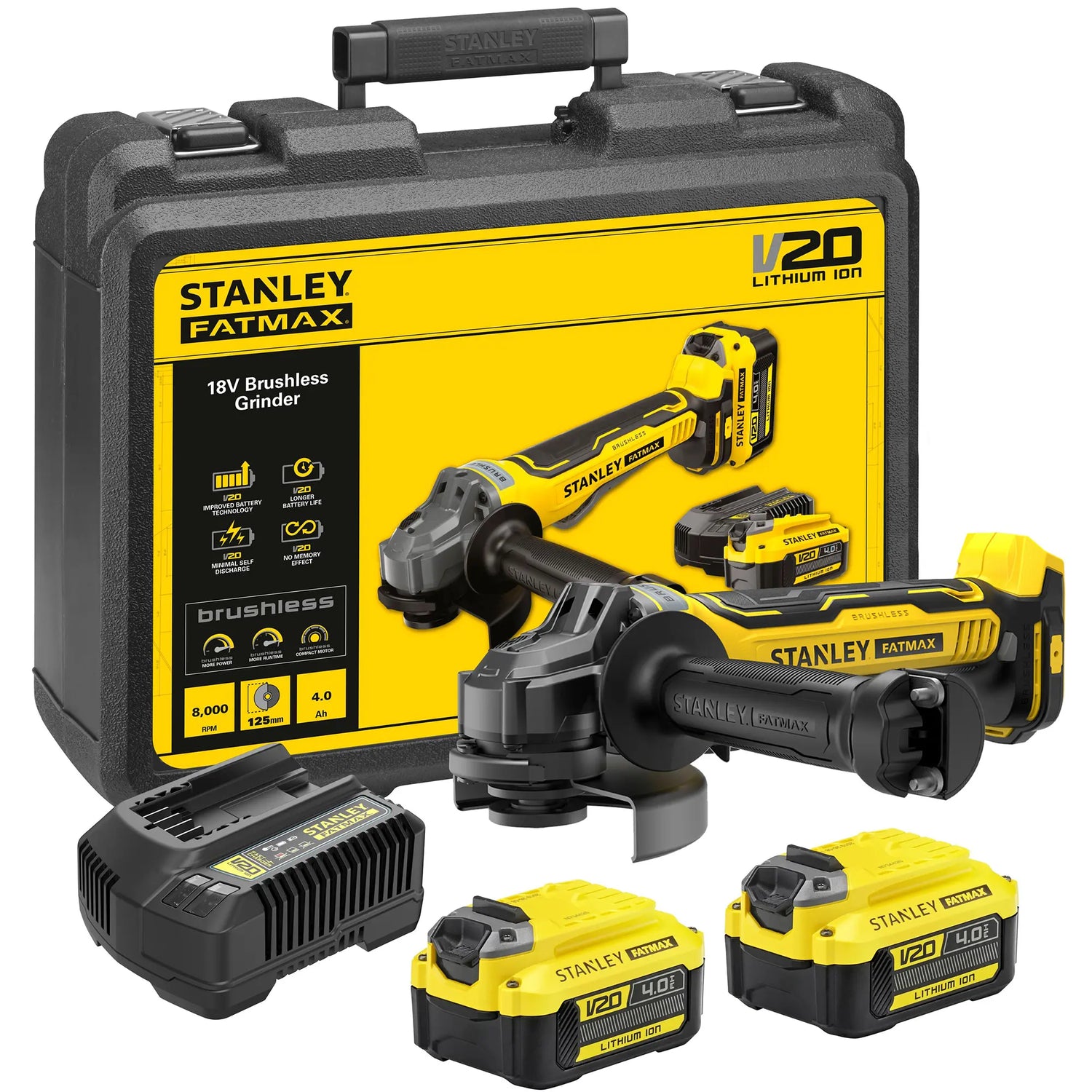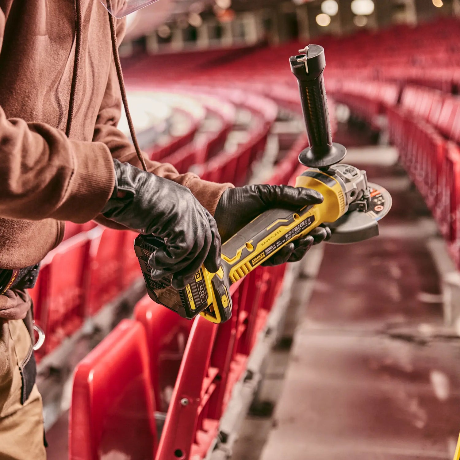 Dort Winkelschleifer Stanley SFMCG700M2K, dank bürstenlosem Motor garantiert er eine bessere Leistung und höhere Effizienz.