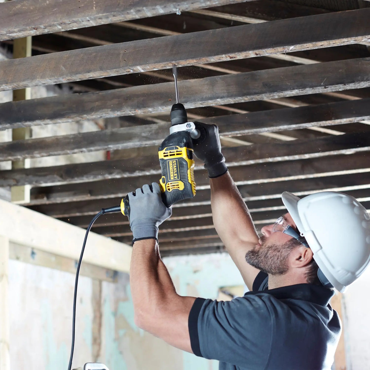 Der Bohrhammer Stanley FMEH750K-QS 750W Es ist langlebig, kompakt und ergonomisch für mehr Komfort, größere Vielseitigkeit und maximale Effizienz.