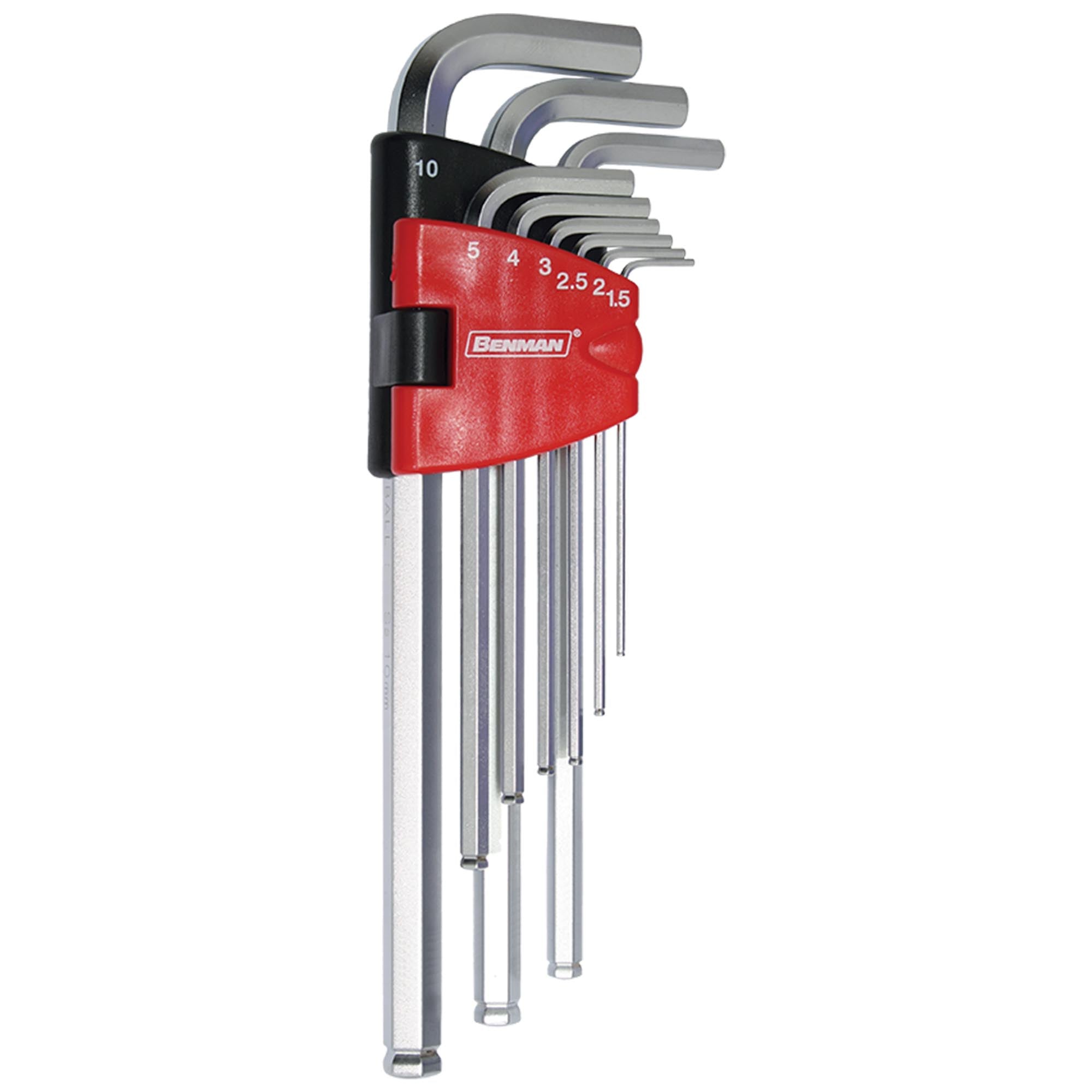 • Inbusschlüssel mit Kugelkopf sind eine ausgezeichnete Wahl für Arbeiten in engen Räumen oder mit schwer erreichbaren Schrauben. Wenn Sie in verschiedenen Winkeln arbeiten müssen, achten Sie darauf, dass das Set Kugelkopfschlüssel für zusätzliche Flexibilität enthält.