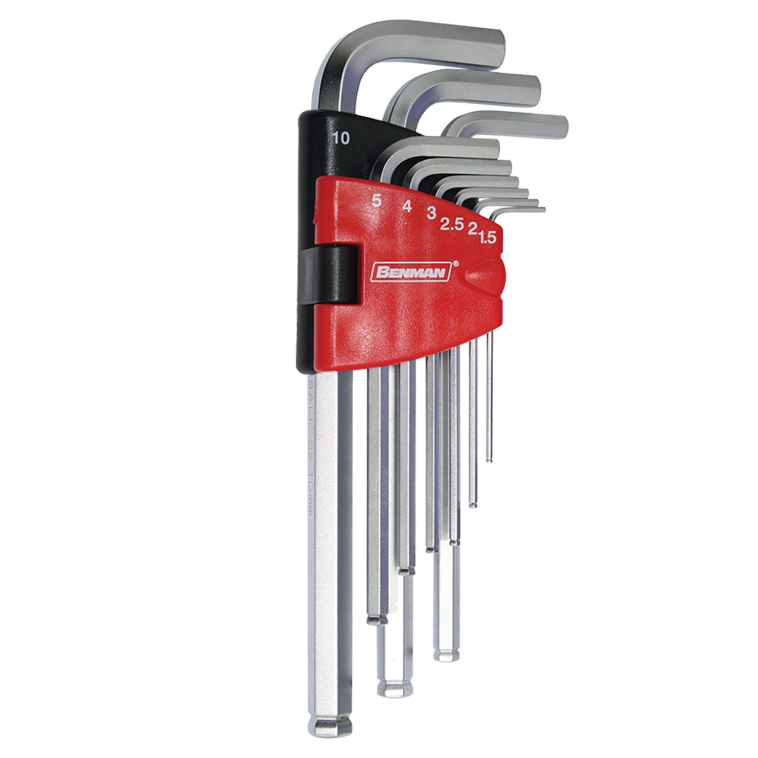 Langer Inbusschlüsselsatz Benman 9 Stck., mit patentiertem Turballkopf, der einen geraden Kopf mit einem Turball-Kopf kombiniert.