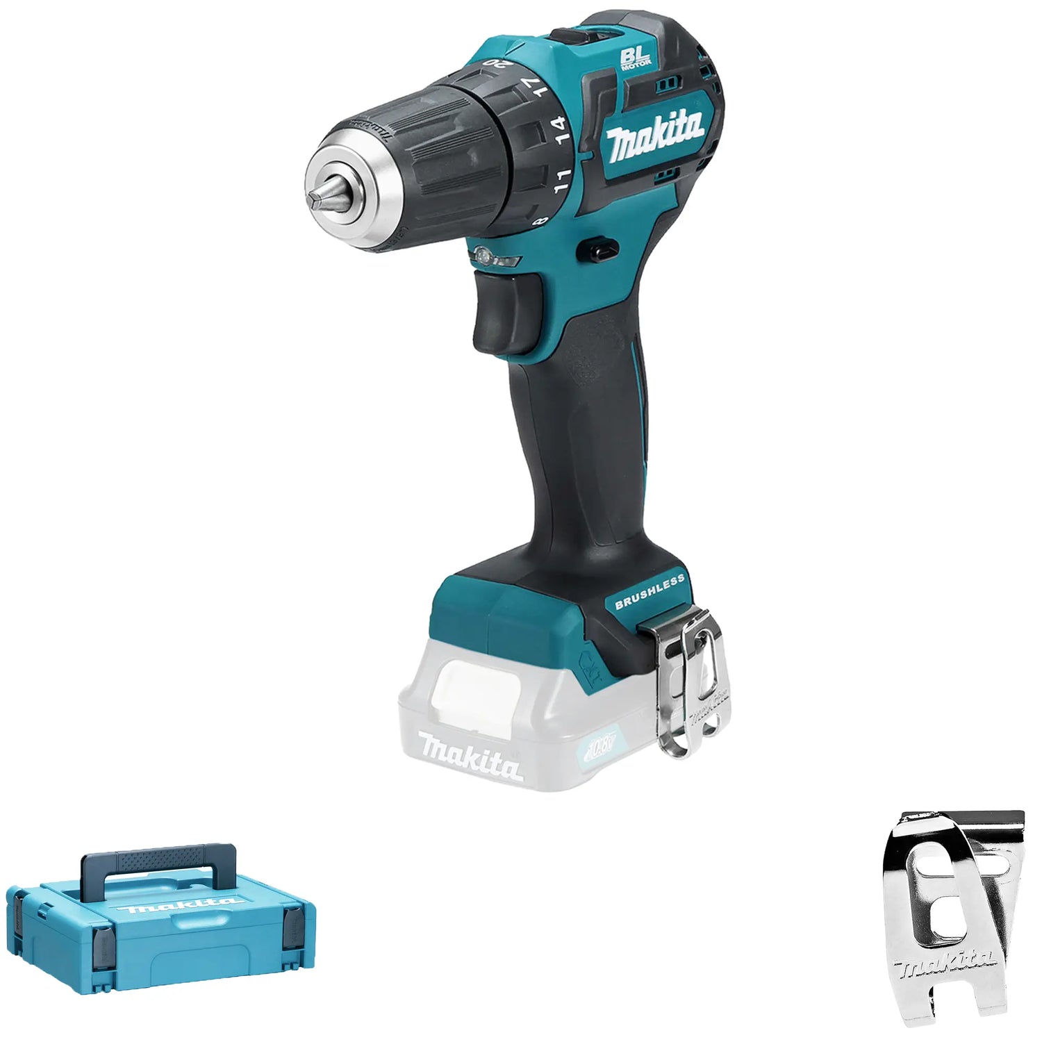 Bohrschrauber Makita DF332DZJ 12V mit leistungsstarkem bürstenlosen Motor in ultrakompakter Bauform und selbstspannendem Bohrfutter Ø max. 10mm.