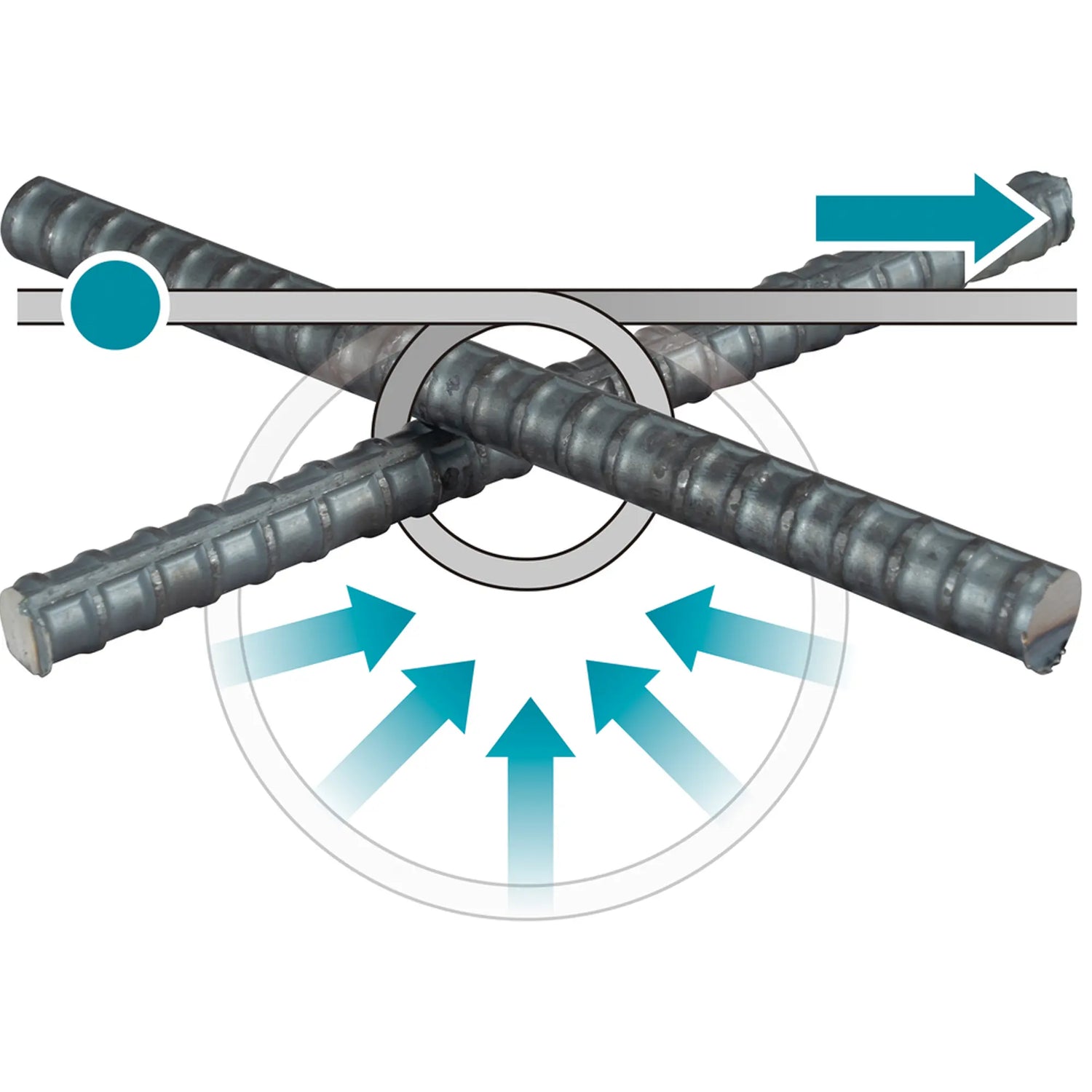 Legaferri Makita TR001GM01 Das Akku-Werkzeug 40V 4Ah wurde entwickelt, um das Binden von Bewehrungsstäben von Ø 10 bis Ø 35 mm schneller, sicherer und präziser zu gestalten.