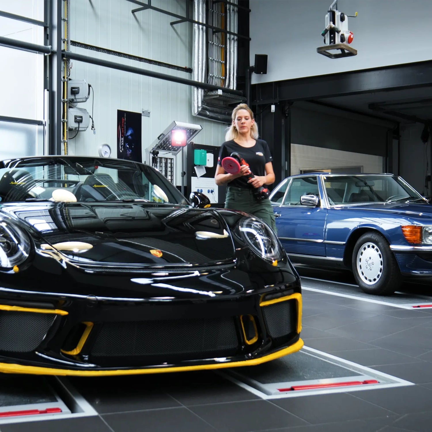 Rotationspoliermaschine Flex TV PE 2 EC C 18V, so leistungsstark wie ein kabelgebundener Polierer während der gesamten Akkulaufzeit.