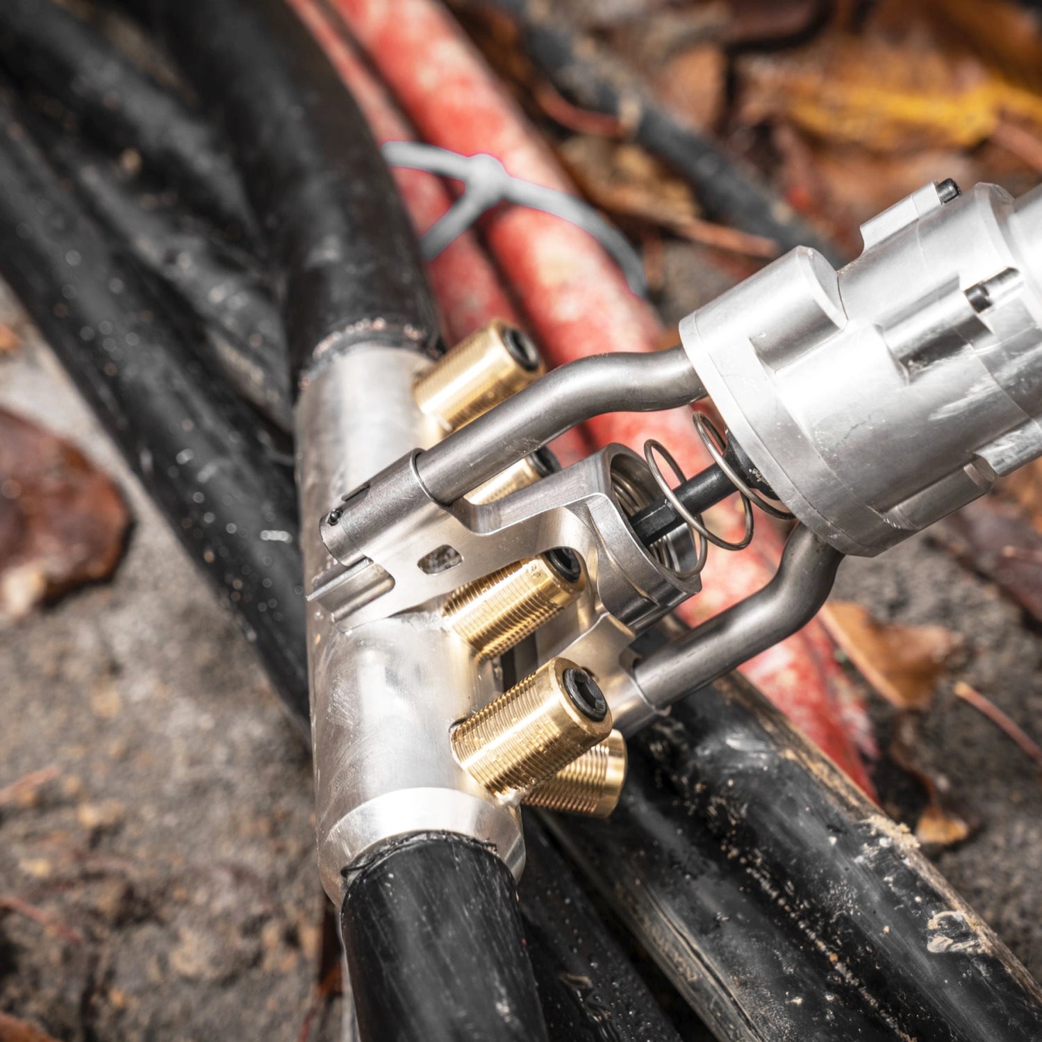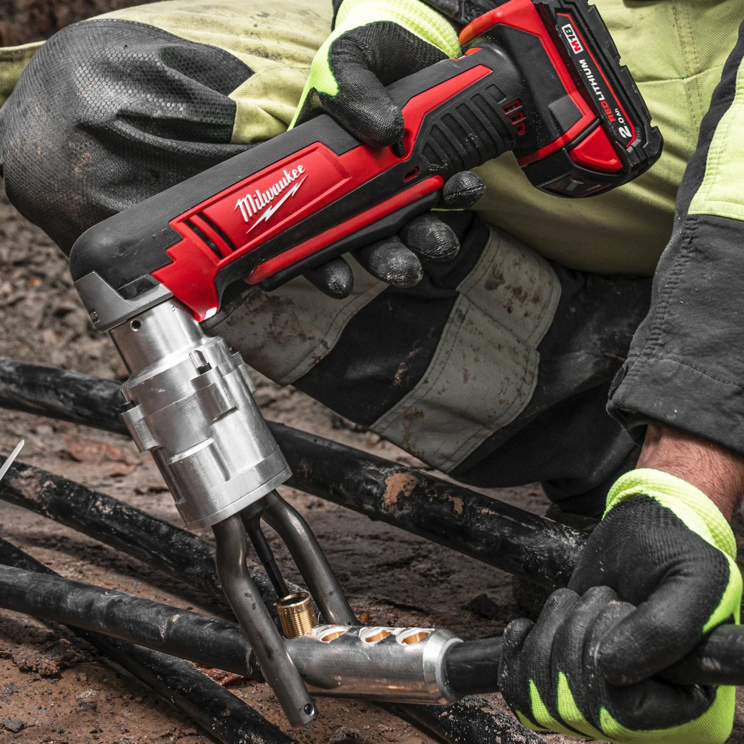 Anschlusspistole Milwaukee M18 BSBT-0X 18V, einsetzbar für Kabel bis 1000mm² bzw. Verbinder mit 78mm Durchmesser. Maximales Drehmoment von 100 Nm