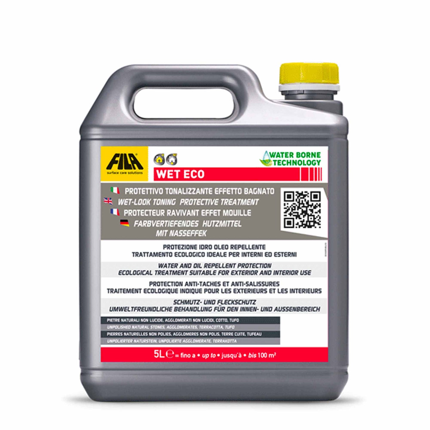 Tonisierender Schutz WET ECO Linie, PFlecken- und Schmutzabweiser im Wet-Look für unpolierte Naturstein-, unpolierte Agglomerate- und Terrakottaoberflächen.