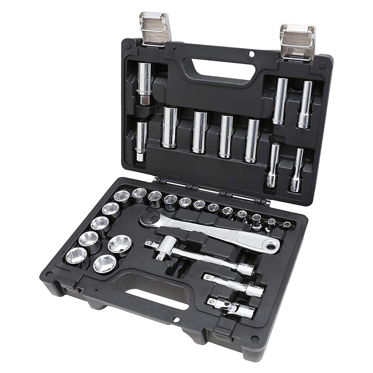 • Zubehör inklusive: Verlängerung, Adapter und Ratsche komplettieren das Set und machen es einsatzbereit für jede Art von Mechanik- oder Heimwerkerarbeit.