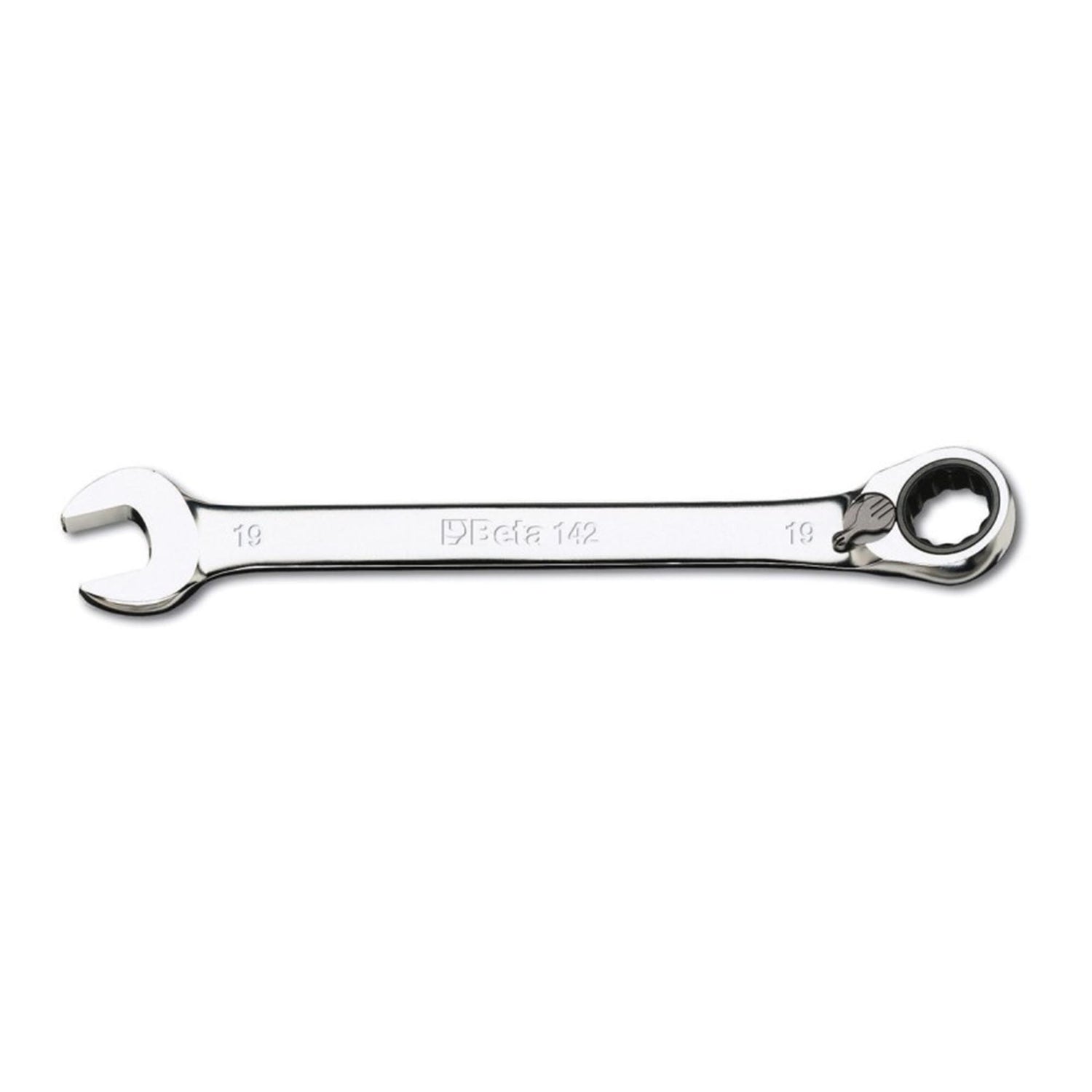 Ratschen-Maulschlüssel Beta 142 umschaltbare verchromte Ratsche gebogene Gabel und polygonal, ideal zum schnellen und präzisen Anziehen.