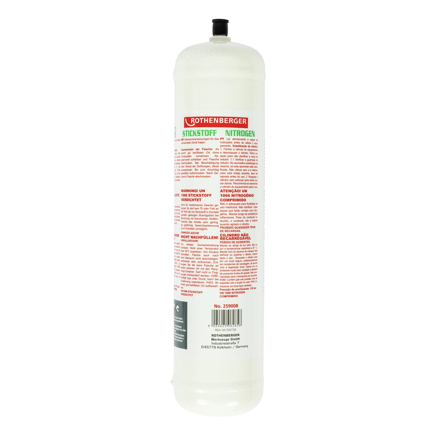 Stickstoffflasche Rothenberger 950 cm³ 110 bar, Stickstoffflasche, ideal für Anwendungen in Klimaanlagen, Kälteanlagen und Wärmepumpensystemen. Zur Lecksuche und zum Flussmittelauftrag beim Schweißen.