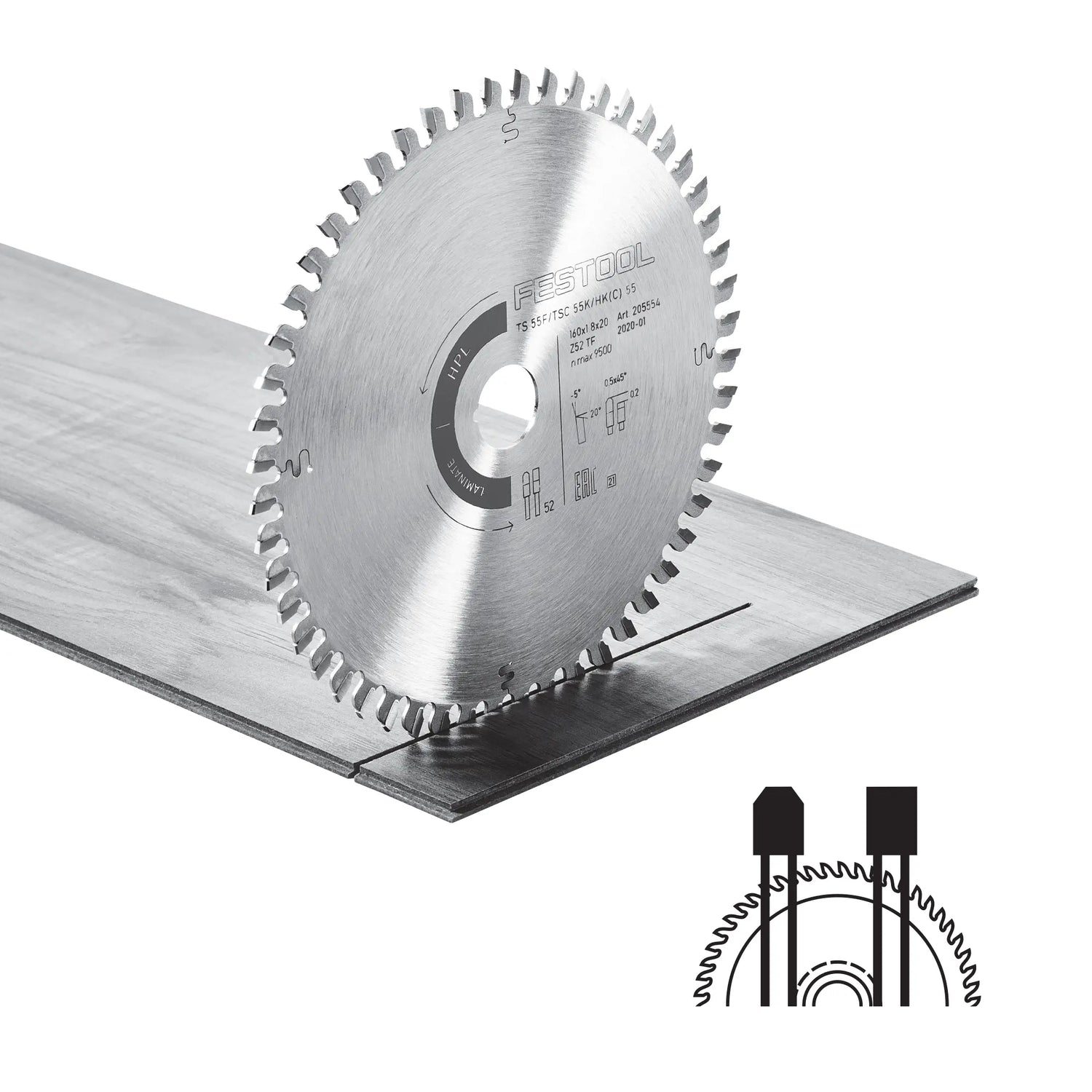Die Laminat-HPL-Klinge Festool HW 160x1,8x20 TF52, weil Qualität besser schneidet.