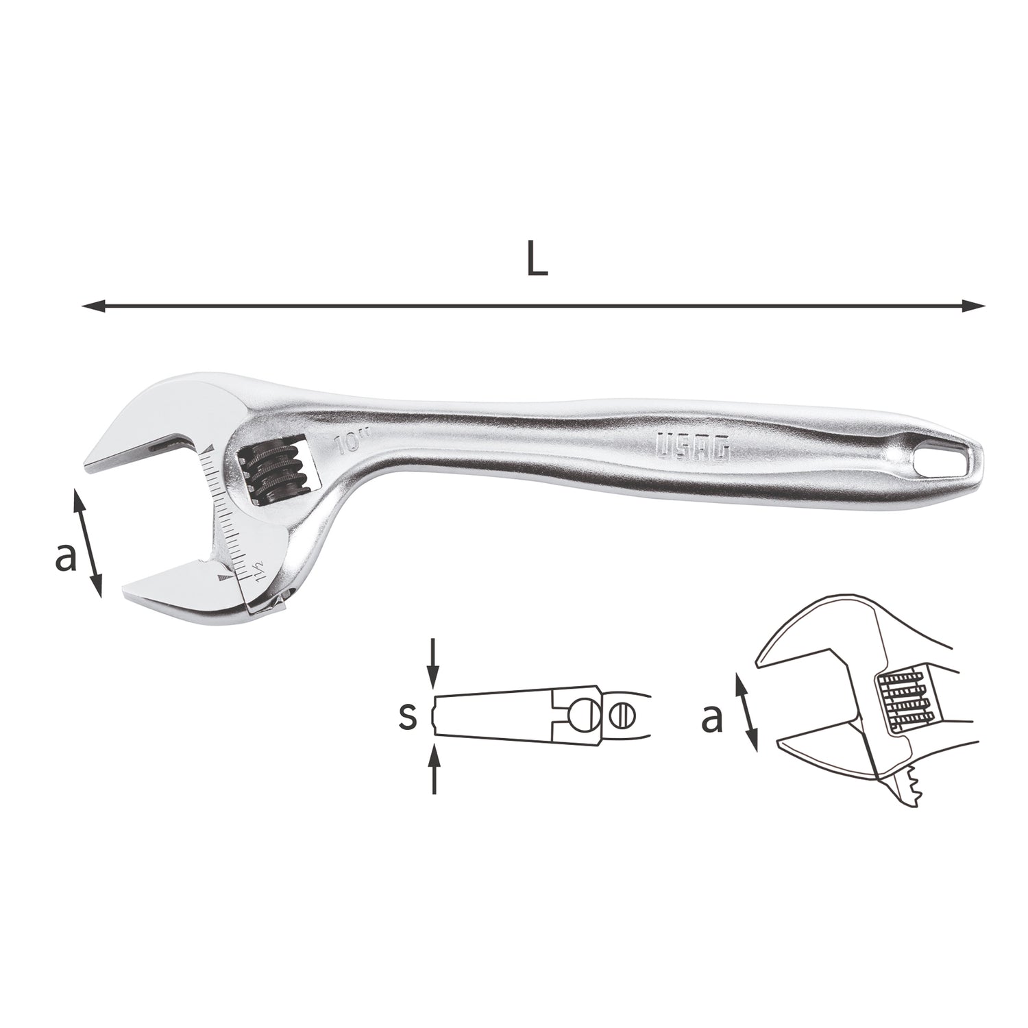The roller keys Usag 294 AD are the ideal choice for those looking for precision, reliability and quick adjustment during work. Thanks to the large opening capacity and the tilted head, they are perfect for the most complex jobs, offering a high level of versatility and comfort.