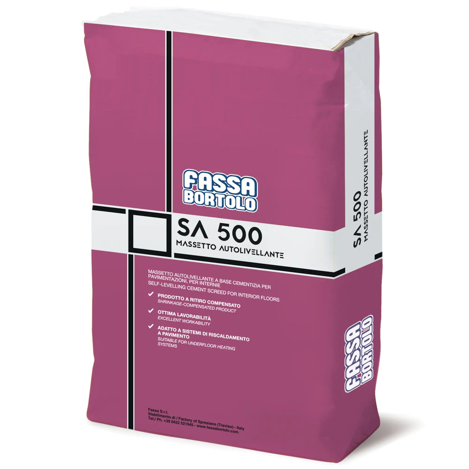 Self-leveling screed Fassa SA500 25kg cement-based, for the creation of radiant screeds and all internal civil floors.