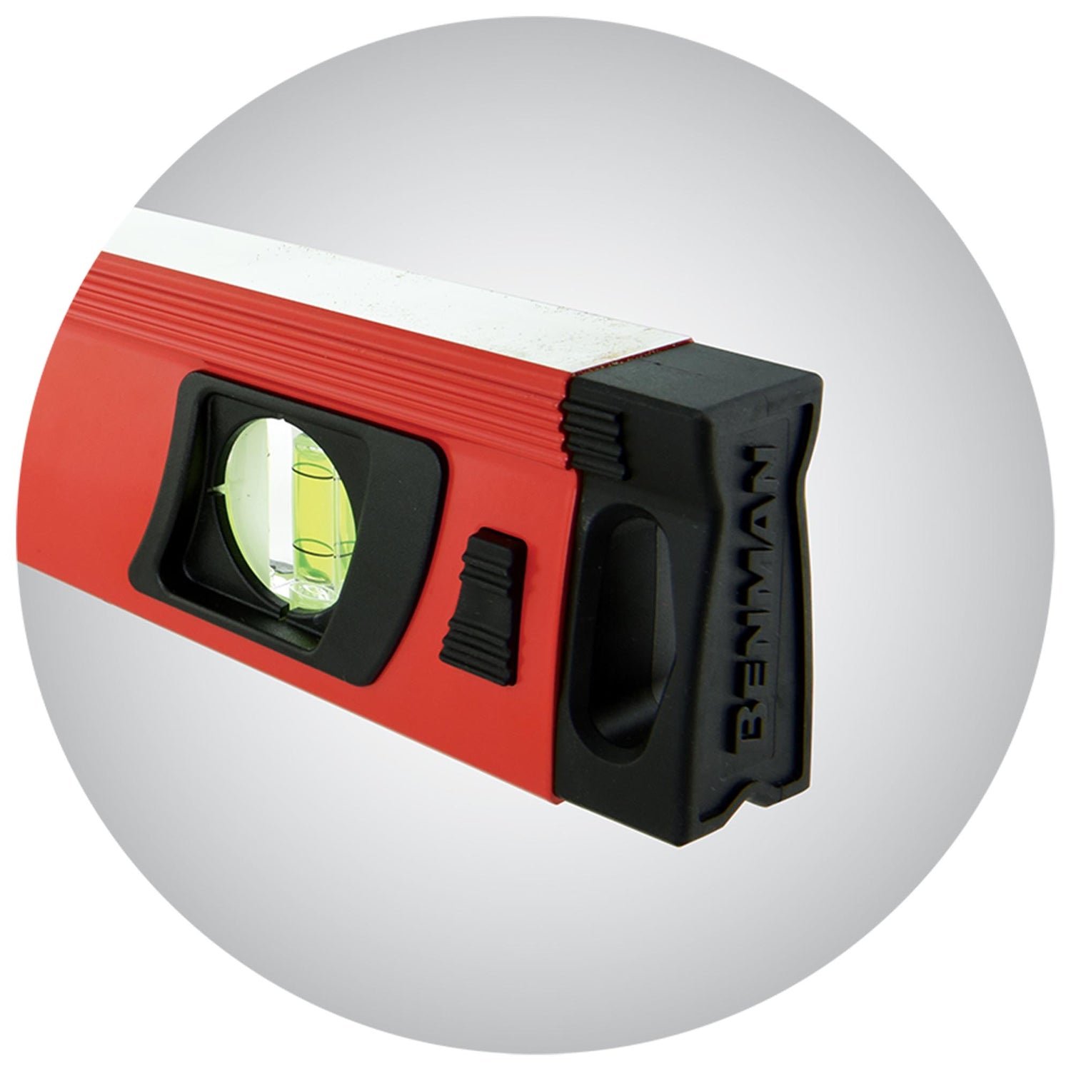 3 Wasserwaage Benman L33, patentierte Kuppel mit Spiegel für klare Sicht bei aufrechter Position an der Wand.