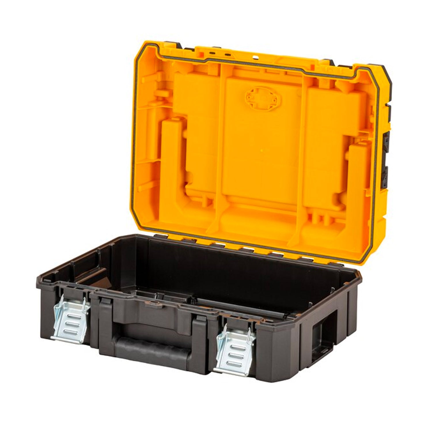 Dort Aktentasche Dewalt DWST83344-1 TSTAK mit Griff Er ist der ideale Begleiter für alle, die Elektrowerkzeuge sicher und geordnet transportieren möchten. Mit seinem robusten, funktionalen Design bietet dieser Koffer Komfort und Schutz und ist somit die perfekte Lösung für Berufstätige, die viel unterwegs sind. Dank des Tragegriffs und der beiden Tragegriffe vorne und hinten können Sie das TSTAK in allen Ausrichtungen ganz einfach transportieren. Dank der individuell anpassbaren Schaumstoffeinlage sind Elektrowerkzeuge und Akkus beim Transport stets geschützt.