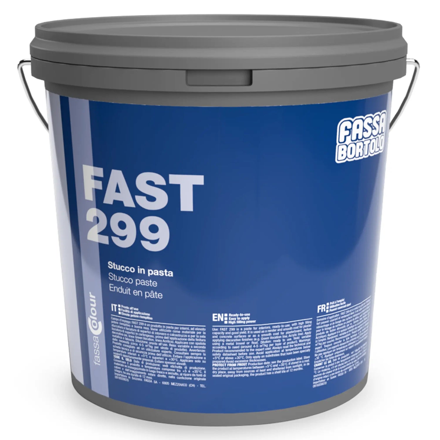Stuckpaste Fassa Fast 299, gebrauchsfertig zum Glätten im 3. und 4. Quartal, verkauft in 20 kg-Dosen.