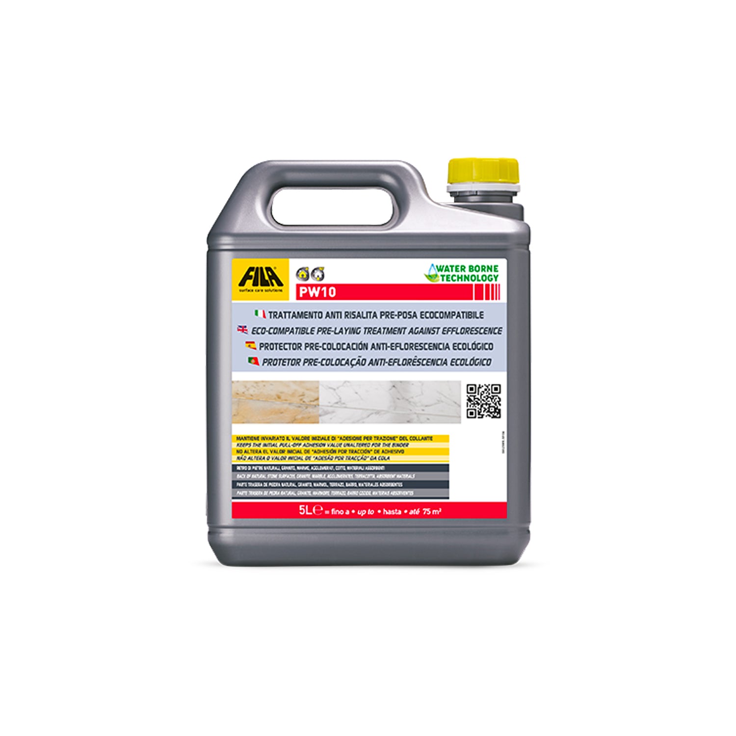 Der Fila PW10 Anti-Rise-Protektor Es ist das ideale Produkt zum Schutz von Oberflächen aus Naturstein, Marmor, Granit, Terrakotta und saugfähigen Materialien und wurde speziell für die Anwendung vor der Installation entwickelt. Dank seiner umweltfreundlichen Formel auf Wasserbasis verhindert Fila PW10 das Aufsteigen von Schadstoffen wie Salzen, Tanninen und Eisensubstanzen und beugt so der Bildung von Rändern und Flecken auf dem behandelten Material vor.
