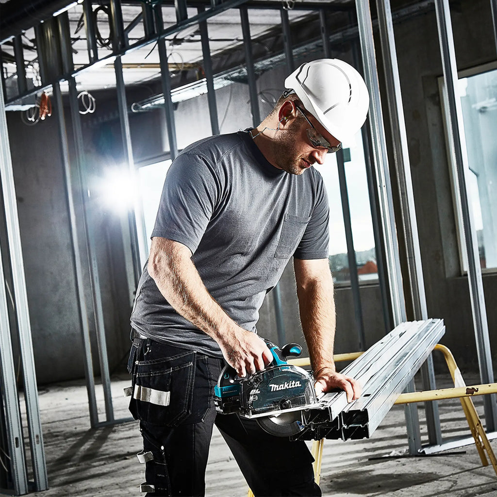 Dort Kreissäge Makita DCS553ZJ 18 V Es handelt sich um eine akkubetriebene Kreissäge mit hervorragender Leistung, ideal für alle, die ein leistungsstarkes und handliches Werkzeug für die effiziente Bearbeitung von Holz und Baumaterialien suchen. Seine Autonomie und Geschwindigkeit garantieren saubere und präzise Schnitte in jeder Situation, ohne von einer festen Stromquelle abhängig zu sein.