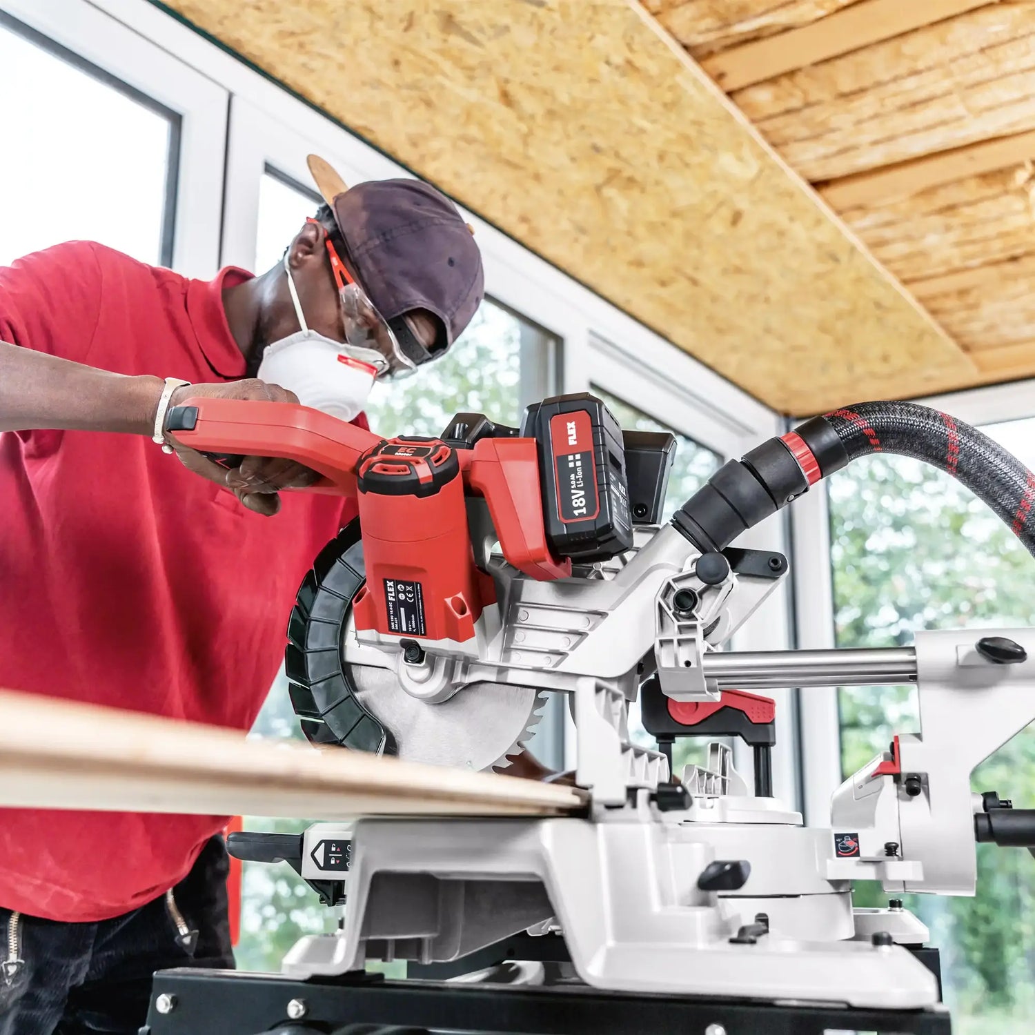 Dort Flex Die SMS 190 18.0-EC dient zur Ausführung hochpräziser Querschnitte, Schrägschnitte und Doppelwinkelschnitte. Sie eignet sich für die Verlegung von Laminat-, Parkett- und Dielenböden sowie für den Bau von Holzwänden und Unterkonstruktionen im Trockenbau.