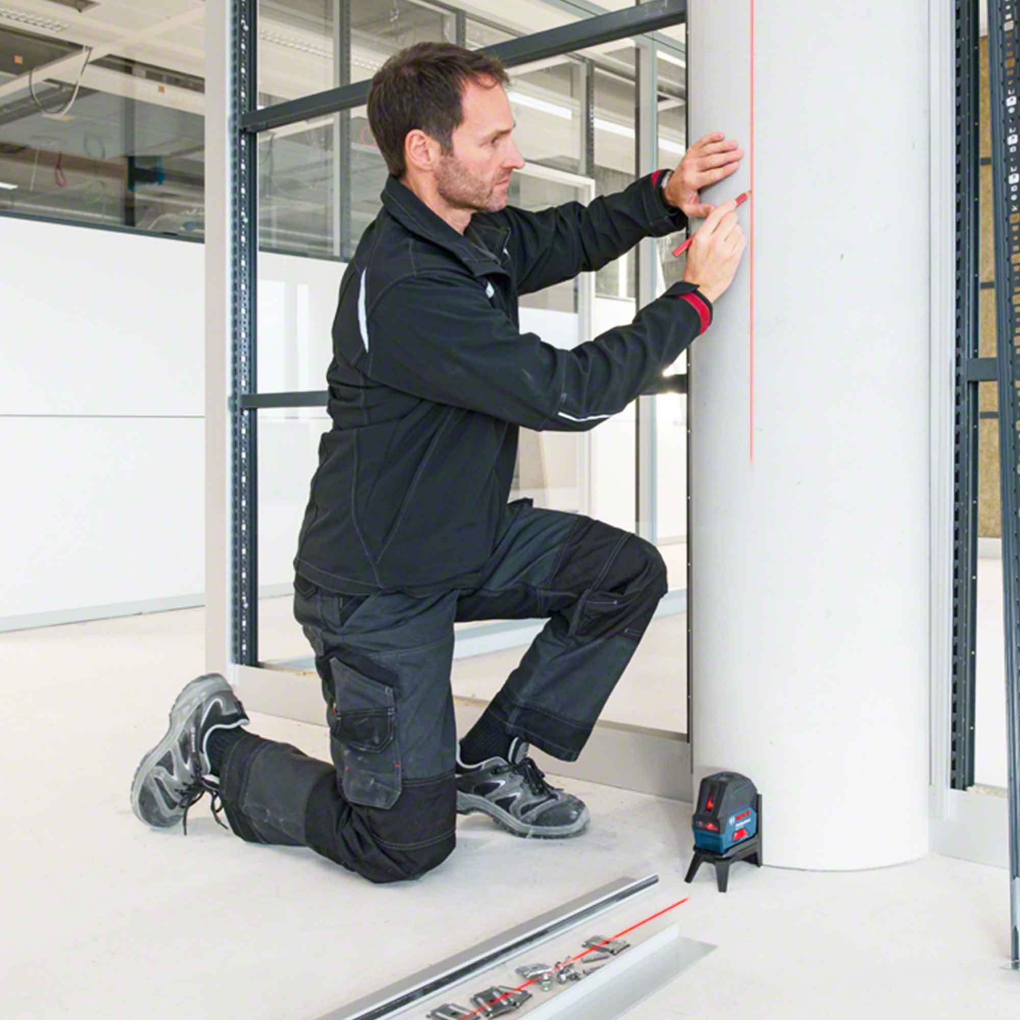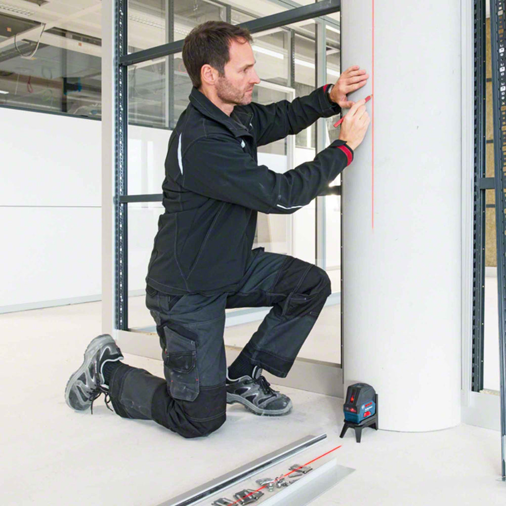 Dort Laser-Wasserwaage Bosch GCL 2-15 Es ist ein kompaktes und äußerst vielseitiges Werkzeug, ideal für Nivellierungsarbeiten über kurze Distanzen. Ausgestattet mit horizontalen und vertikalen Laserlinien eignet es sich perfekt für Präzisionsarbeiten, wie das Übertragen von Lotpunkten und das Nivellieren von Oberflächen. Mit drehbarem Ständer RM 1 Profihaben Sie die Möglichkeit, Laserlinien einfach um Lotpunkte zu positionieren und so maximale Flexibilität auf Baustellen oder bei Präzisionsarbeiten zu gewährleisten.