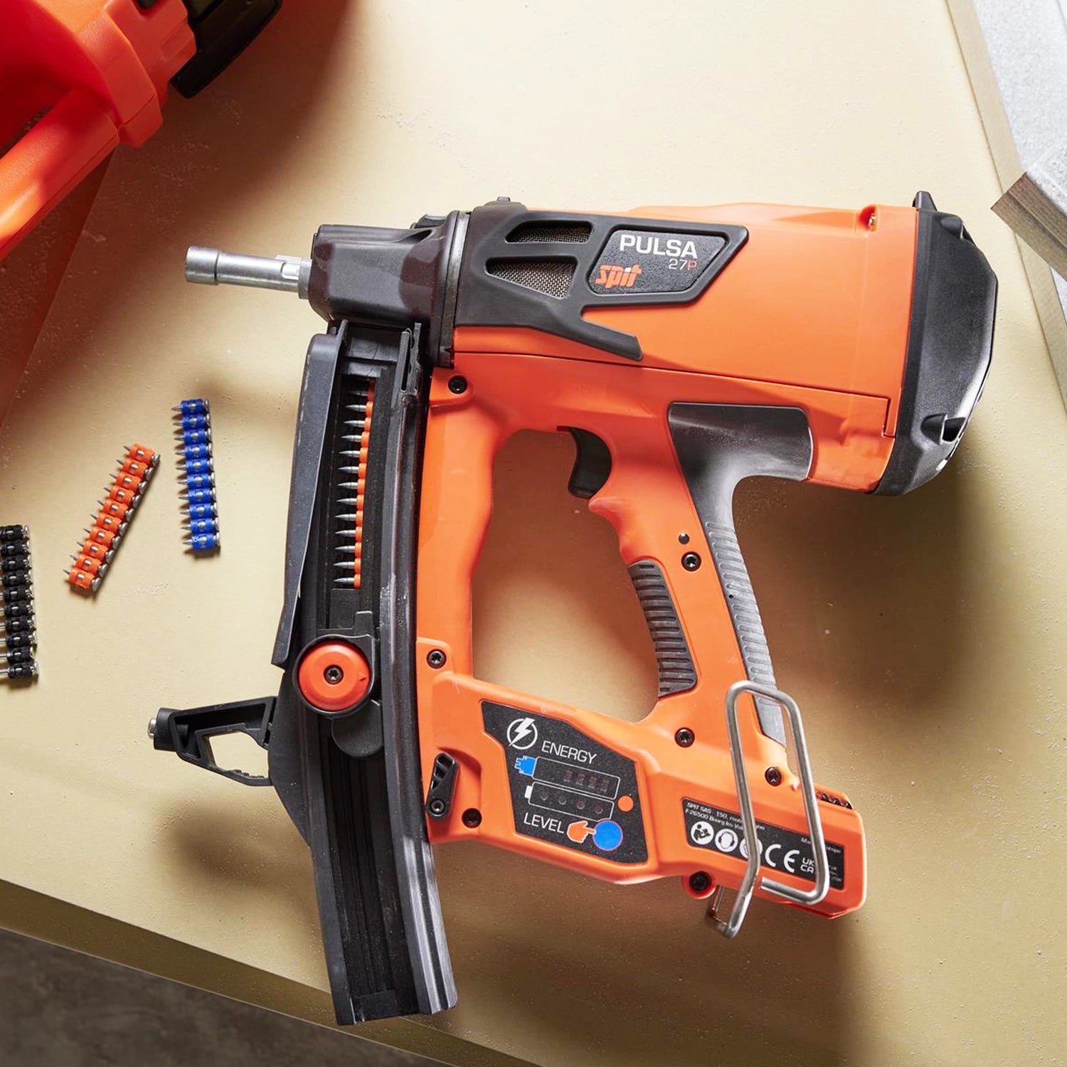 Dort Nagler Spit Puls 27P Es handelt sich um das leichteste und kompakteste Modell der Reihe und ist für den Überkopf-Einsatz und die intensive Nutzung konzipiert. Wenn Sie ein Werkzeug suchen, das Leistung und Präzision bietet, ohne Sie zu ermüden, ist der Pulsa 27P die ideale Wahl. Dank seines ergonomischen Designs und fortschrittlicher Technologien gewährleistet dieser Nagler Effizienz und Sicherheit beim Befestigen auf verschiedenen Arten von Trägern.