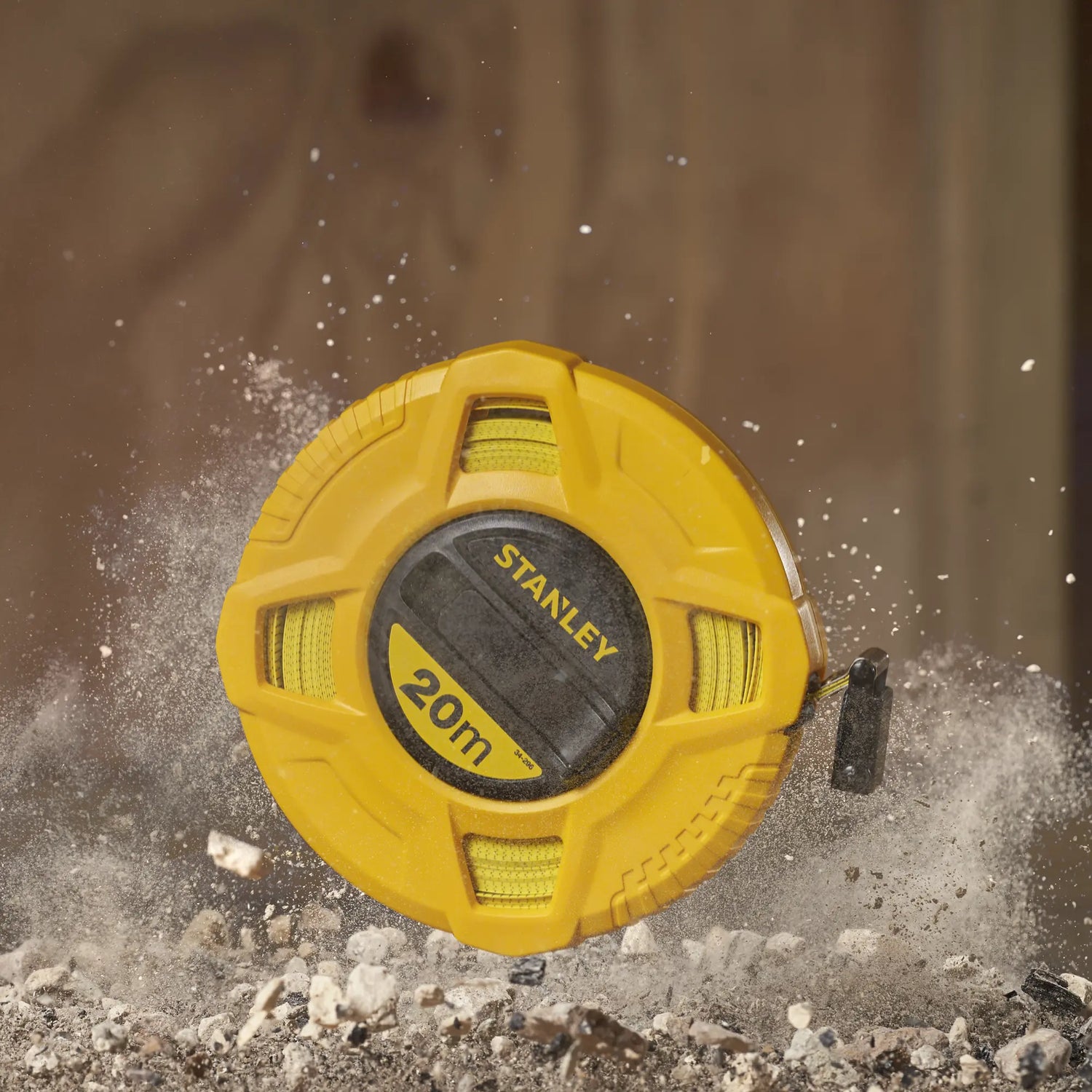 Dort Rad Stanley mit Glasfaserband Es ist das ideale Werkzeug für Bauprofis, Vermesser und Techniker, die benötigen zuverlässige und robuste Messungen unter allen Bedingungen. Dank des flexiblen Glasfaserbandes und des stoßfesten ABS-Rahmens bietet es eine überlegene Widerstandsfähigkeit, perfekt für den intensiven Einsatz auf Baustellen oder im Freien.