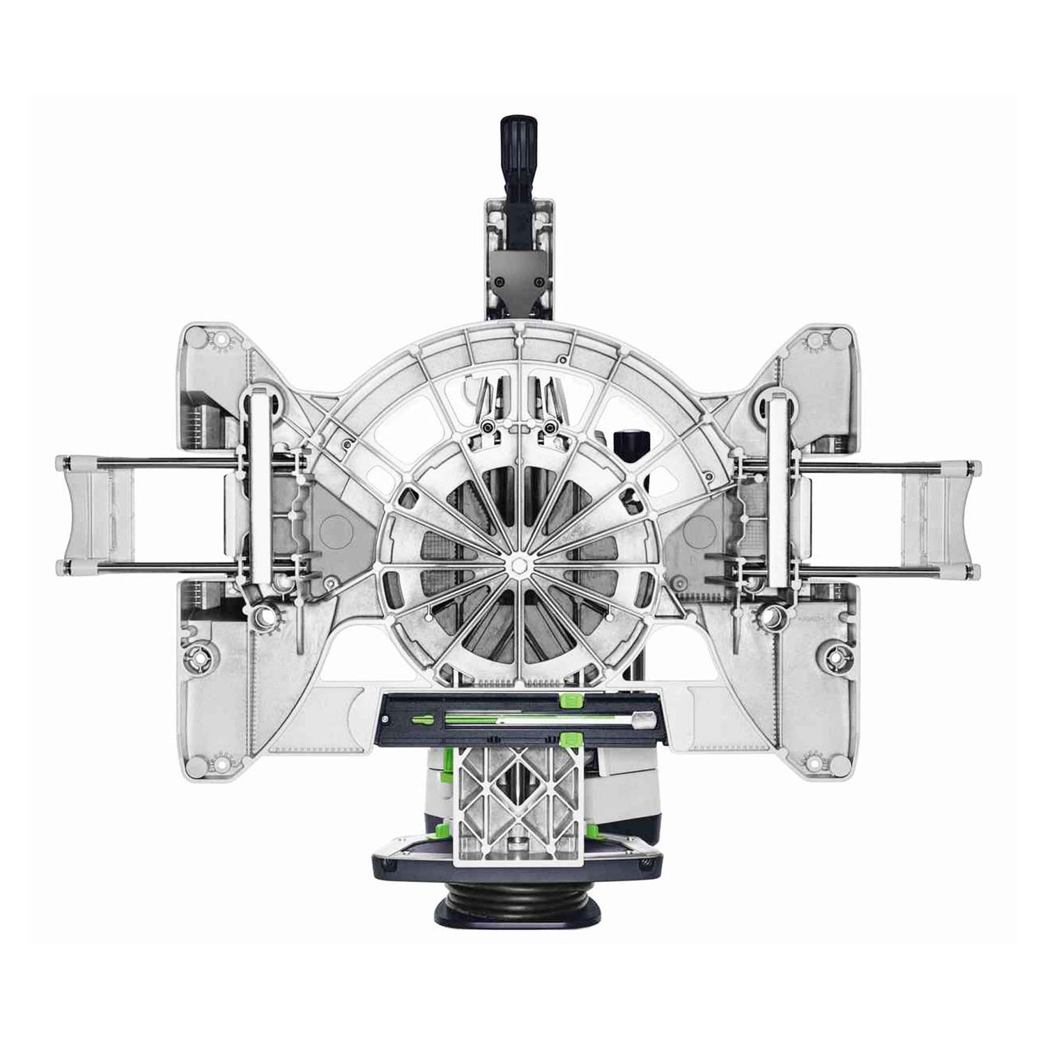 Die Radial-Gehrungssäge Festool KS 120 REB Es verfügt über beidseitige Kugelbuchsen mit doppelter präziser Abdichtung der Führung auf großzügig dimensionierten Säulen. Doppelte Abdichtung für extreme Langlebigkeit, immer exakt und ohne Spiel.