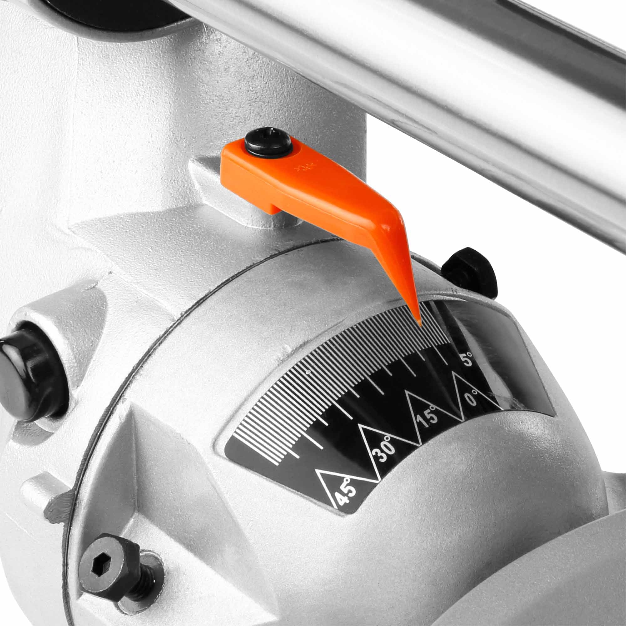 • Ergonomie und Vielseitigkeit: D-Griff aus Gummi für bequemes Halten und Basis aus bearbeitetem Aluminium für stabile Materialunterstützung.