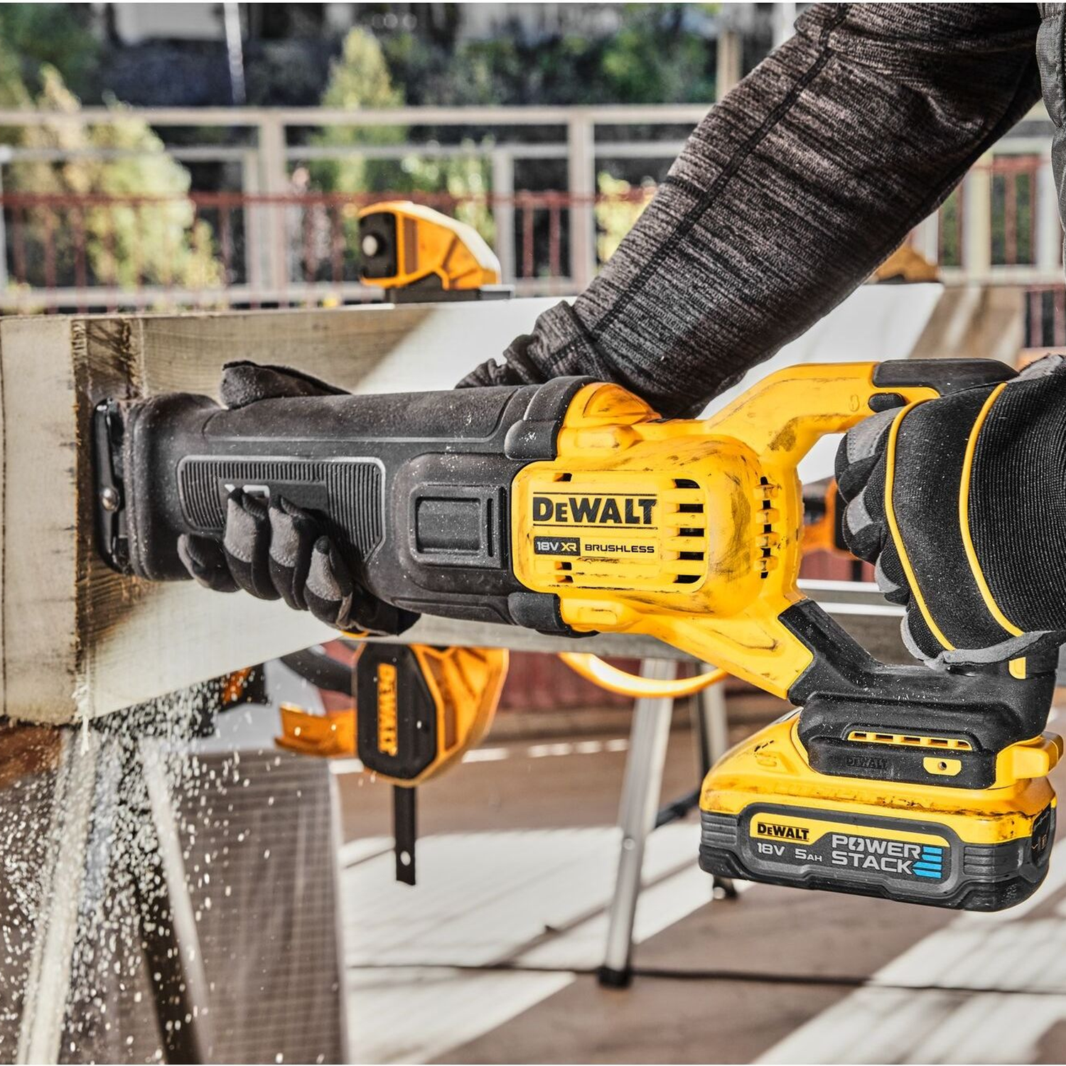 Universalsäge Dewalt DCS386H2T-QW 18V 5Ah Brushless mit bürstenlosem Motor und 2 POWERSTACK-Akkus für maximale Autonomie und professionelle Vielseitigkeit.