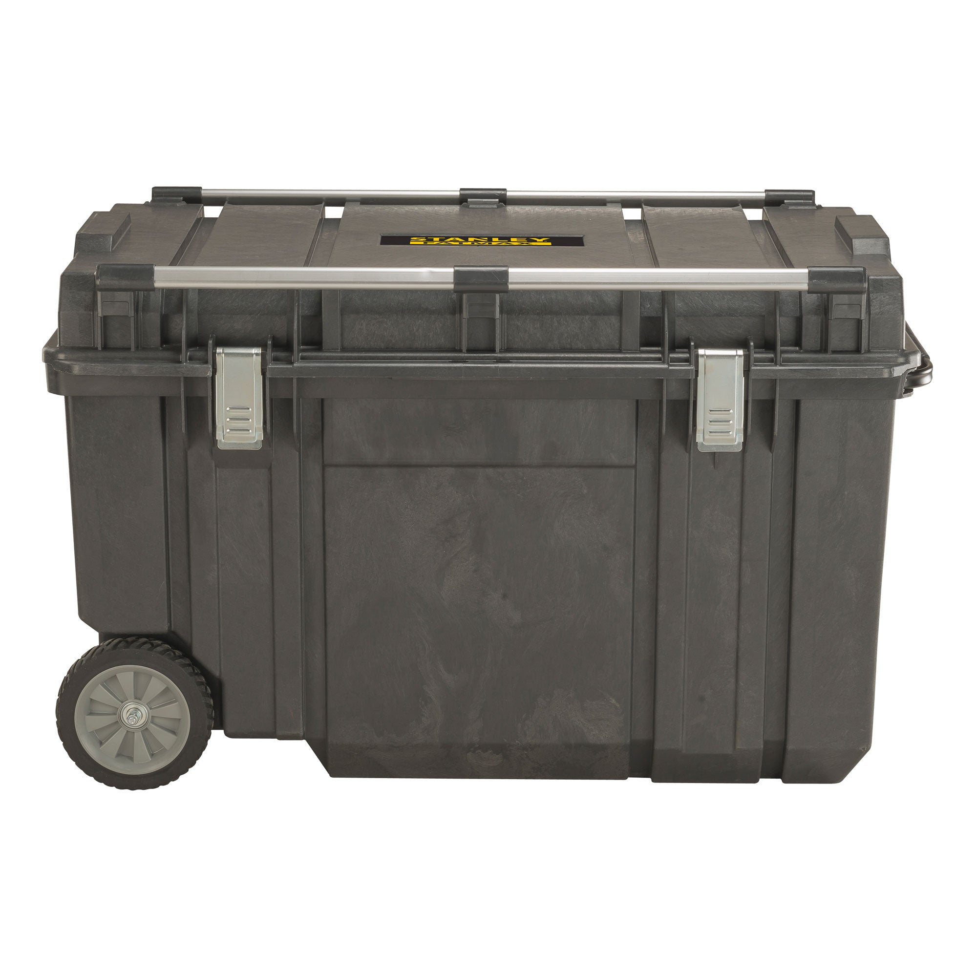 Dort Wanne mit Rädern Stanley FATMAX®, das erste auf dem Markt, wurde dank einer speziellen Metallstange speziell dafür entwickelt, dem Deckel zusätzliche Lasten zu verleihen.