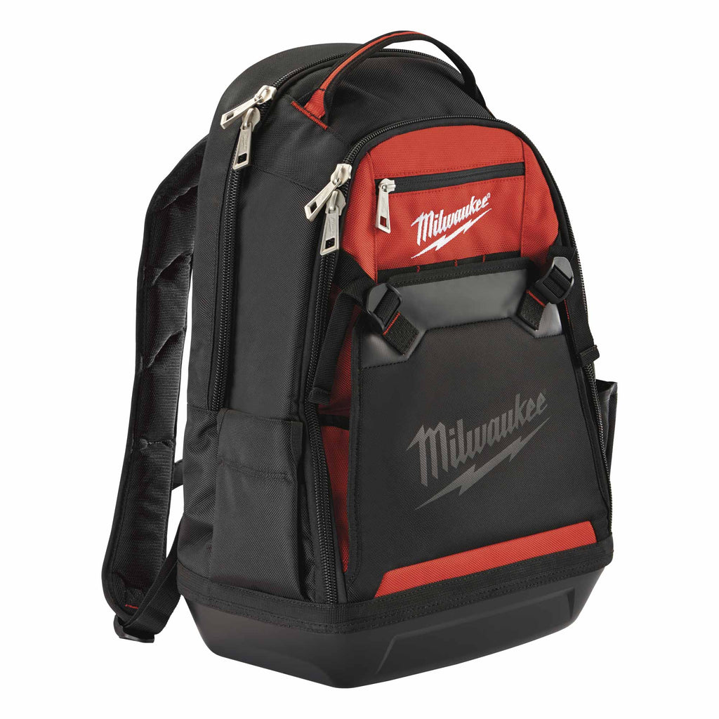 Der WerkzeugrucksackMilwaukee Er besteht aus ballistischem 1680D-Nylon und verfügt über einen starren geformten Boden, der dafür sorgt, dass der Rucksack aufrecht stehen bleibt und so der Inhalt maximal geschützt ist.